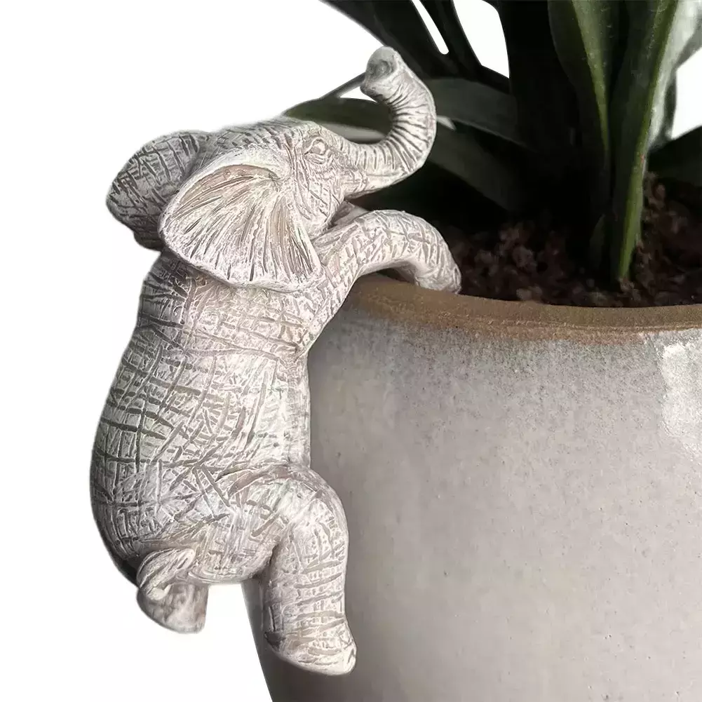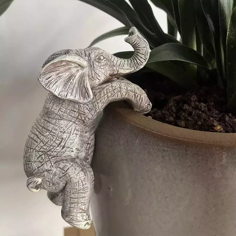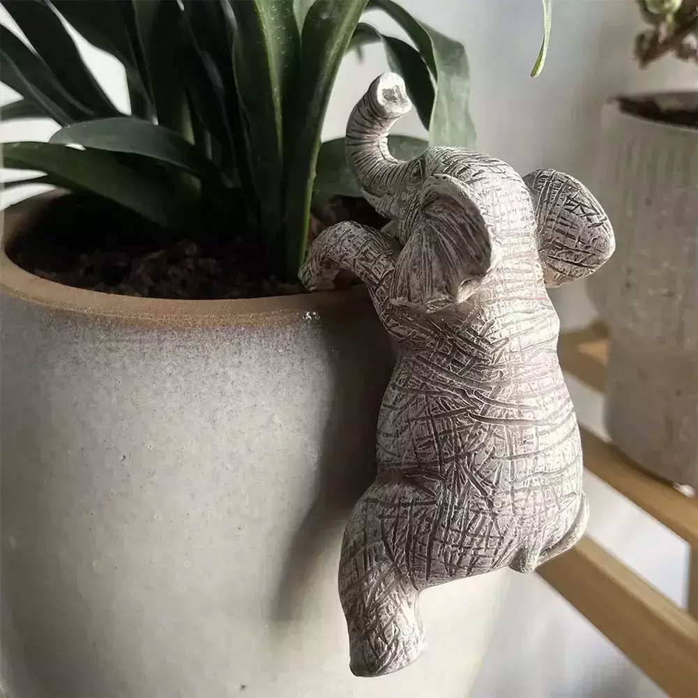 Bonitas figuras de elefante de escalada, maceta de elefante de resina, decoración creativa, adornos de elefante para balcón, Patio, césped Características: 1.Regalo encantador:Este abrazador de maceta de elefante es el regalo perfecto, con colores elegantes y un diseño elegante.Crea un ambiente dulce y acogedor, ideal para realzar cualquier maceta o exhibición de jardín. 2.Versatilidad decorativa:Adorne sus espacios verdes con esta linda figura de elefante trepador, una fusión de encanto prehistórico y jardinería moderna. 3.Jungla en miniatura:Esta estatua de elefante colgante no es solo una decoración sino una jungla en miniatura que cobra vida en medio de su follaje.Se pueden combinar plantas tolerantes al tono cuidadosamente seleccionadas con este adorno para recrear un paisaje denso, parecido a la jungla, que evoca la vida floreciente de la antigüedad, despertando una imaginación ilimitada. 4.Diversión educativa:Más allá de su atractivo artístico, este lindo adorno de elefante también sirve como una herramienta educativa que entretiene e informa.Fomenta la curiosidad de los niños por los dinosaurios, sus hábitats y la biodiversidad, fomentando una apreciación más profunda por la historia natural de la Tierra mientras disfruta de la belleza de un bonsái o maceta bien elaborado. 5. Decoración animada:Perfecta para agregar un toque divertido a su entorno, esta decoración de maceta de elefante se puede colgar en los bordes de macetas, marcos de cuadros, pantallas de lámparas y más.