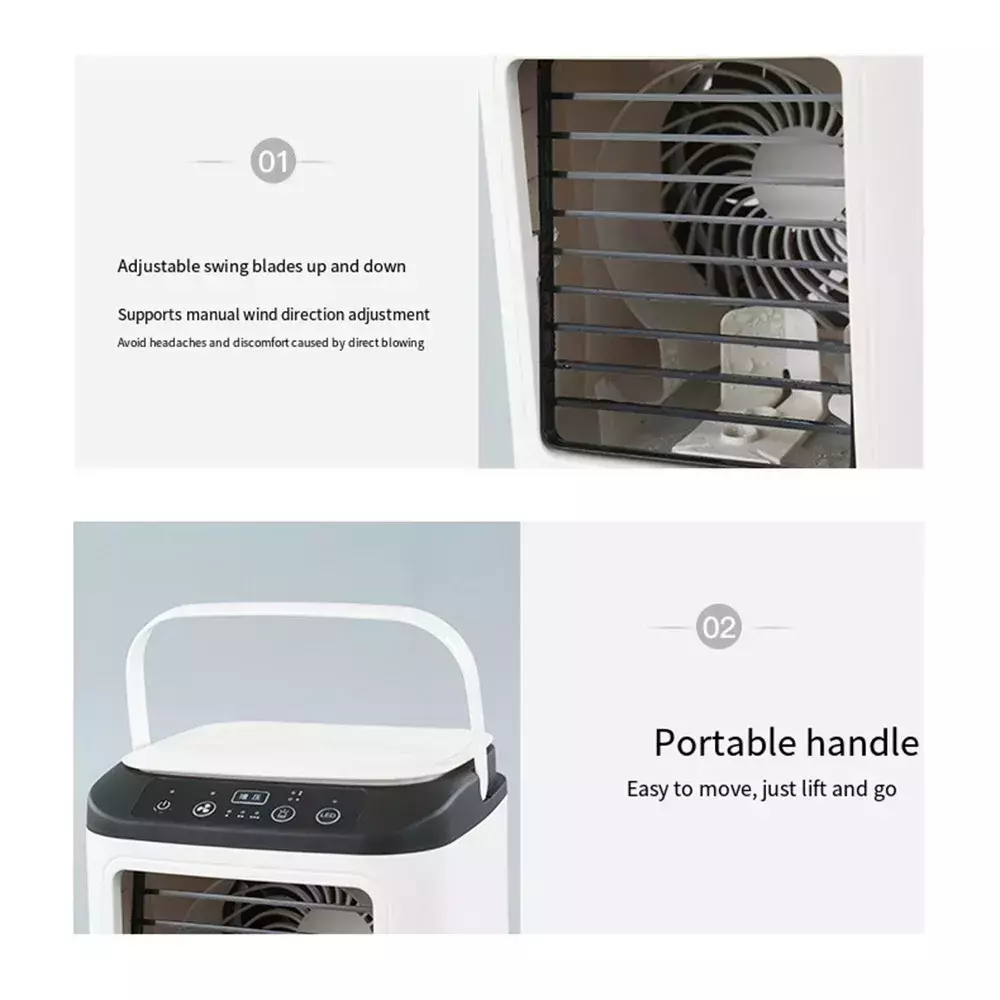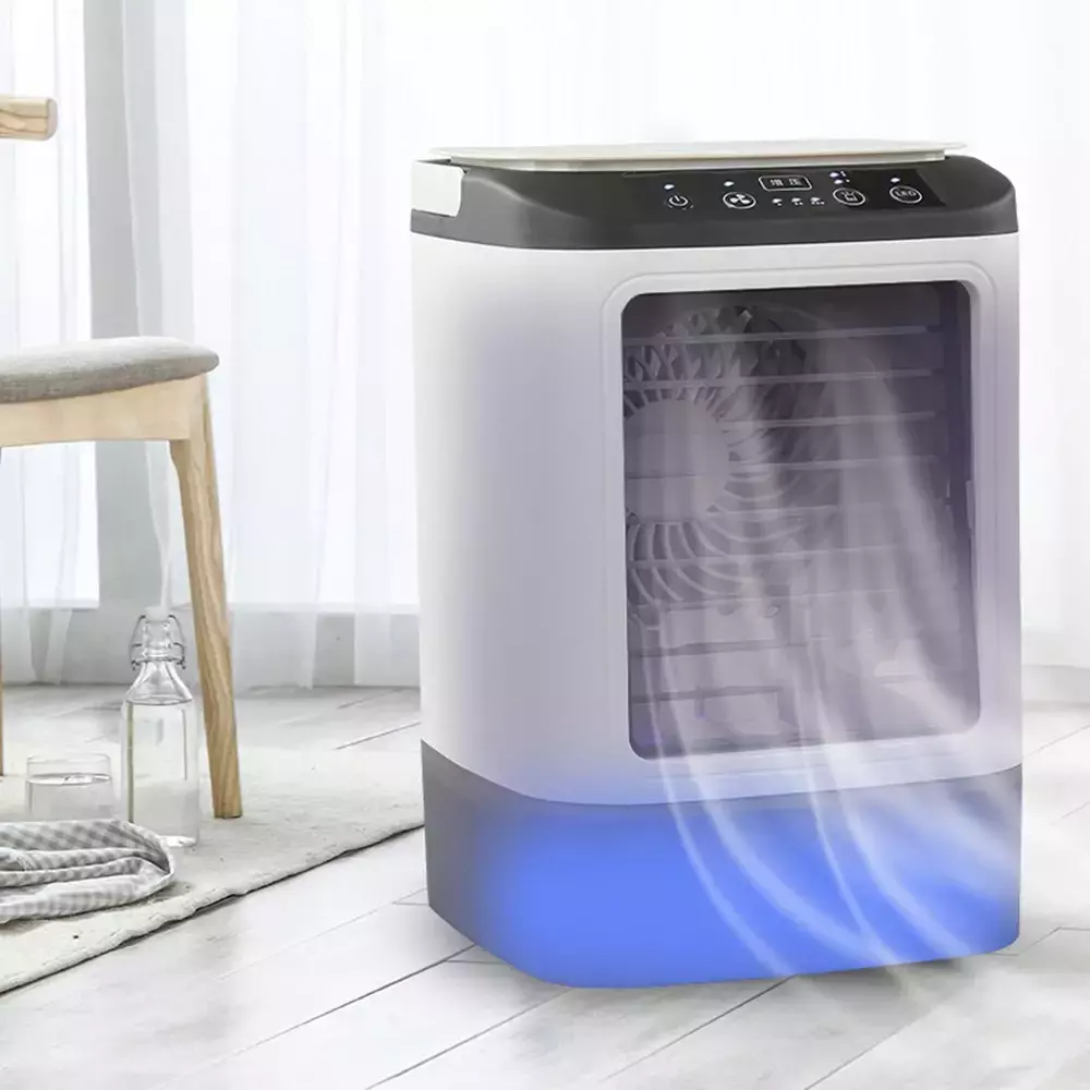 Ventilador de aire acondicionado portátil USB de 3 engranajes para habitación, hogar, humidificador de escritorio, Mini ventilador de refrigeración, lámpara LED nocturna, Enfriador de aire para acampar