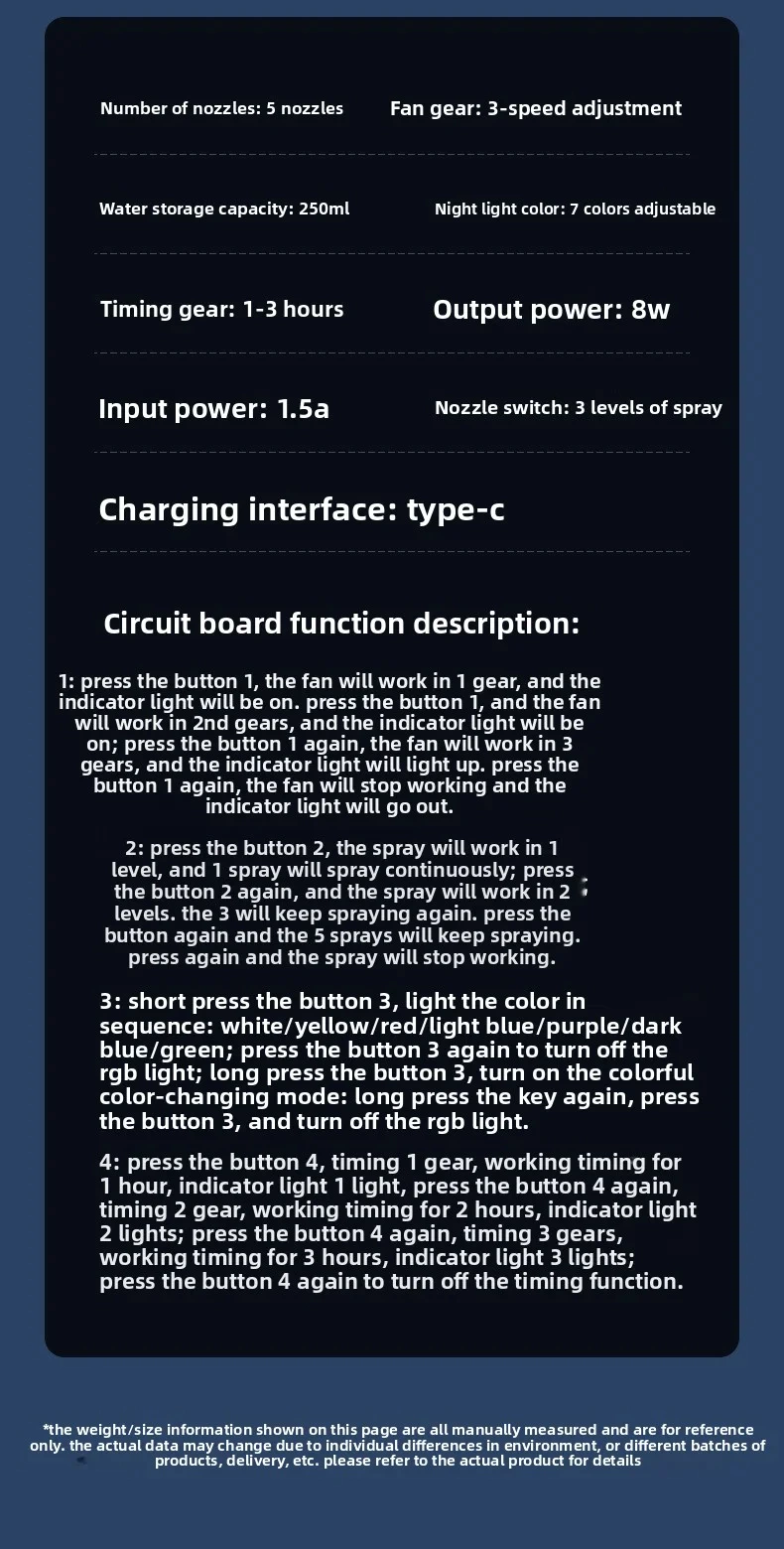 ESPECIFICACIONES:Nombre del producto: ventilador humidificador